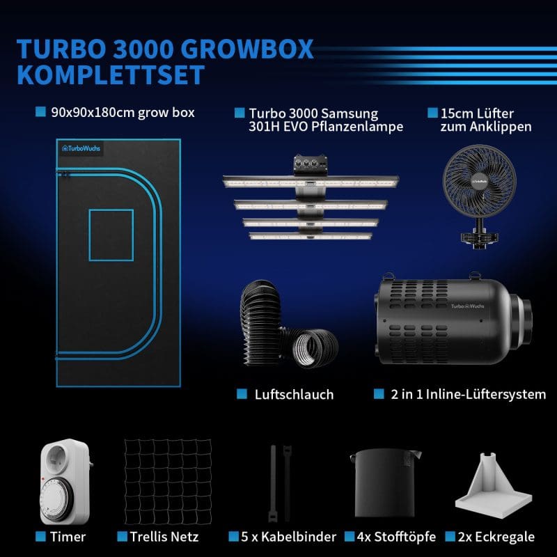 Turbowuchs Turbo3000 90x90x180cm Growbox Komplettset Samsung Led