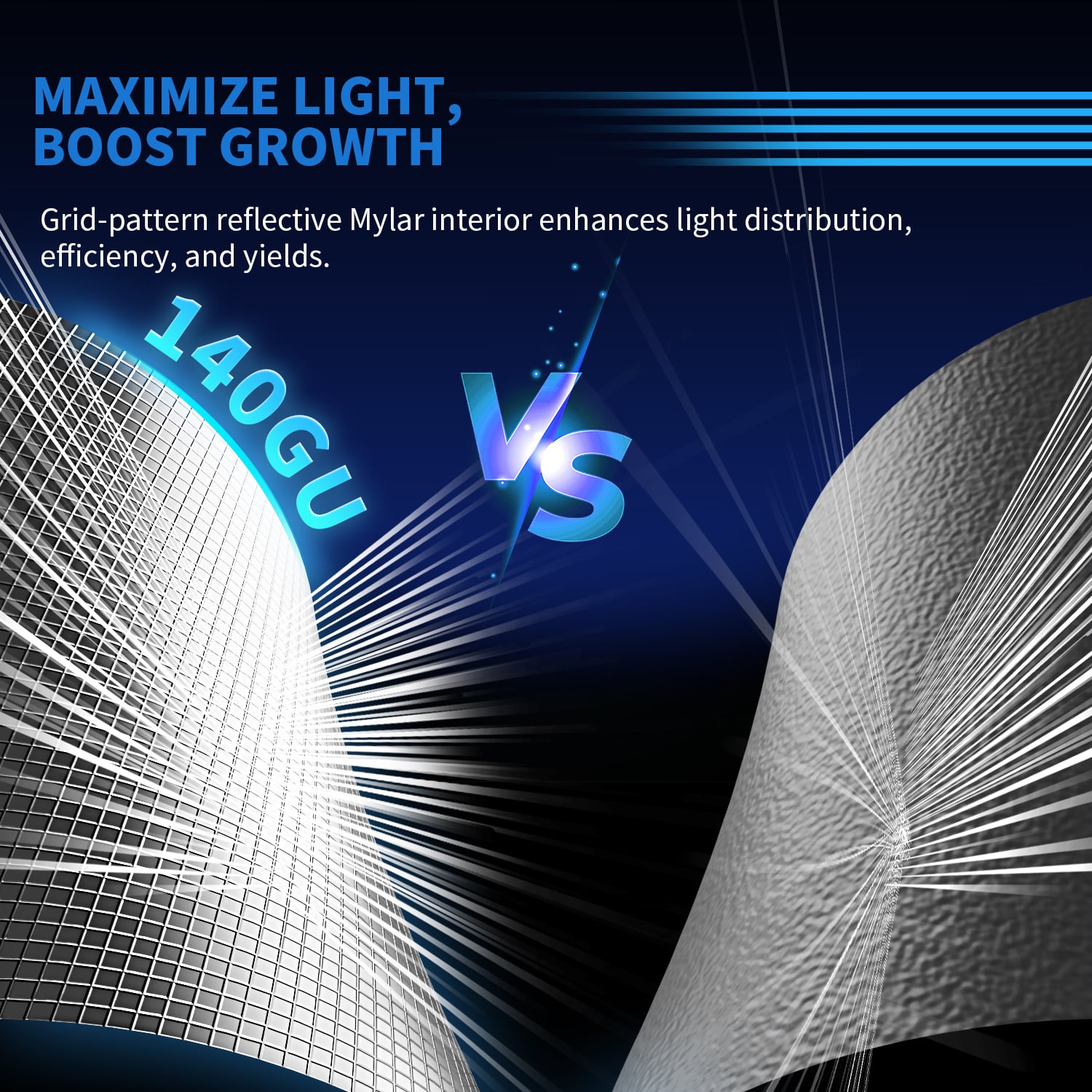 Lightproof and Reflective Interior: The tent's interior is lined with a highly reflective Mylar material, maximizing light utilization for better plant growth and energy efficiency.