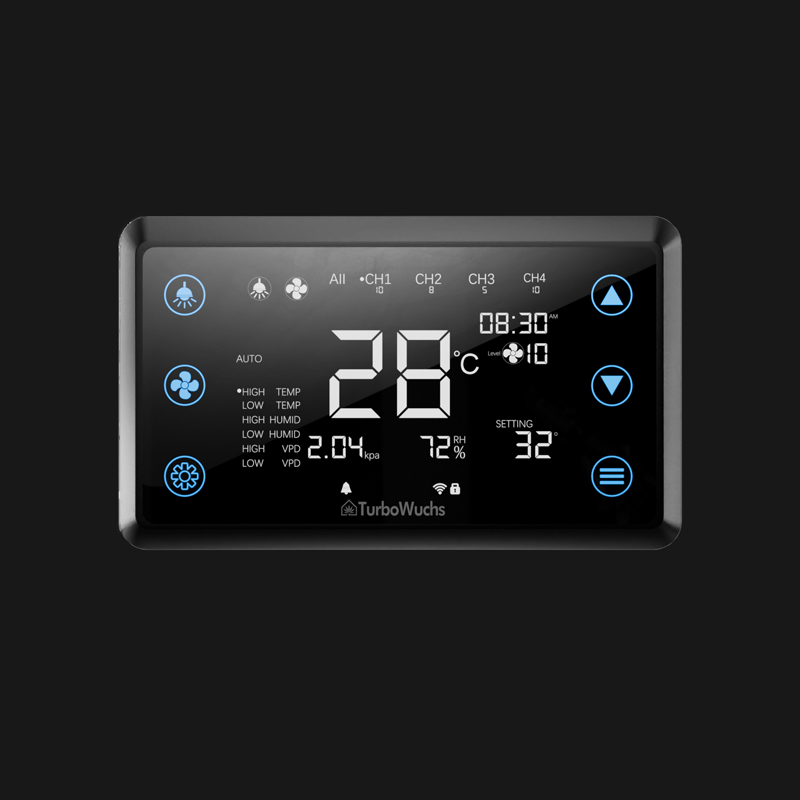 Die intelligente Steuerung in Kombination mit dem 2-in-1-Inline-Lüfter ermöglicht eine präzise Regelung von Temperatur und Luftfeuchtigkeit im Growzelt und passt sich automatisch an die eingestellte Temperatur und Luftfeuchtigkeit an. So haben Sie freie Hände und Ihre Pflanzen können besser wachsen. Der Lüfterfilter ist austauschbar und umweltfreundlicher.