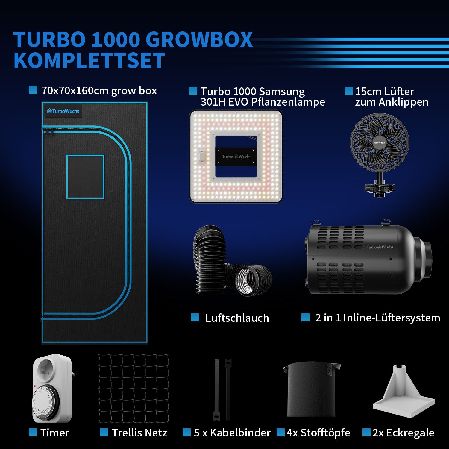 Turbowuchs Turbo1000 70x70x160cm Growbox Komplettset Samsung Led