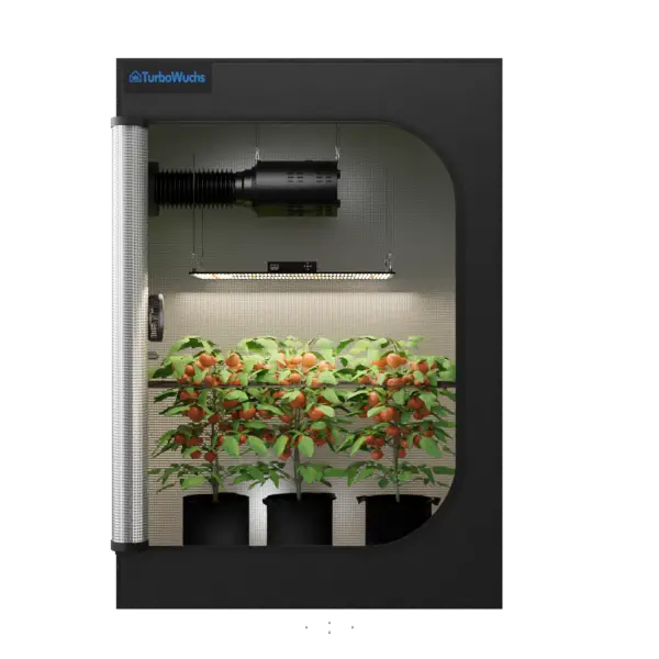 - Beleuchtung: Den größten Energieverbrauch in einem Growzelt verursacht in der Regel die Beleuchtung. LED-Lampen sind energieeffizienter als herkömmliche Natriumdampflampen (HPS) oder Halogen-Metalldampflampen (MH). Eine 1000-W-HPS-Lampe verbraucht 1000 W, ein gängigeres LED-System für kleine bis mittelgroße Zelte liegt jedoch bei ca. 100 bis 300 W.
